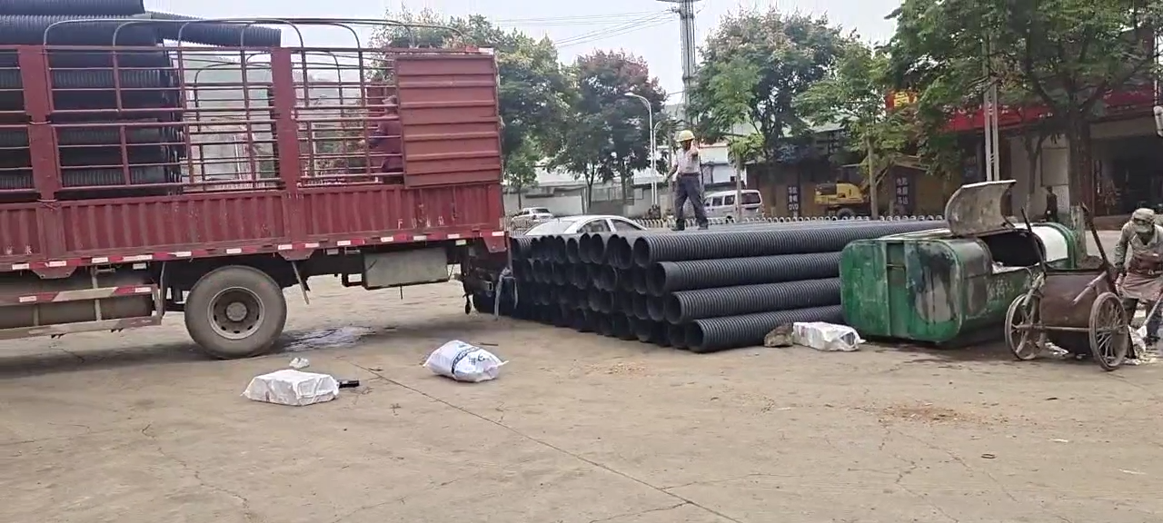 2022年1月11日農(nóng)村污水項目PVC排水管收貨